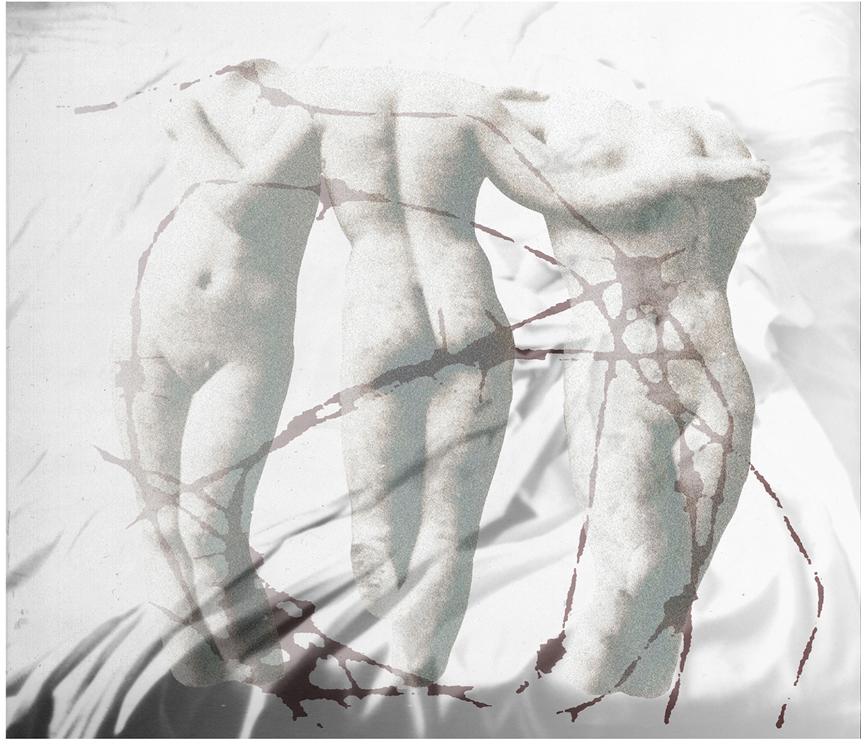 … Beauty, harmony, calm and contained movement, are the evident qualities that distill that soft, timeless erotic that still attracts us. Bodies made of stone, to which, after the manipulation of the original image, the artist gives carnality, humanizing them. Fictitious muscle and skin that seem to beat with the same intensity as a living organism. “